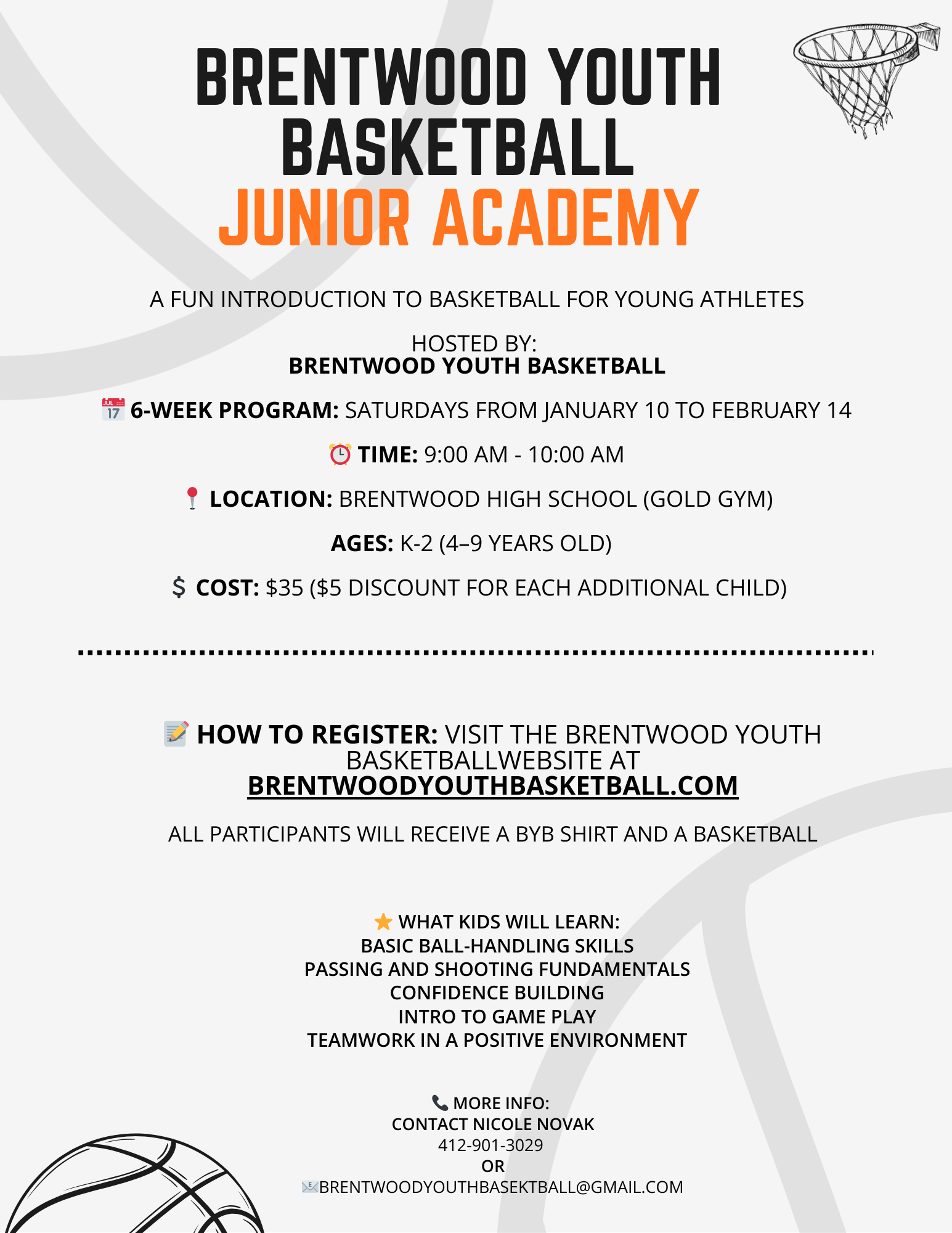 Registration for the Brentwood Youth Basketball Junior Academy is currently open!
