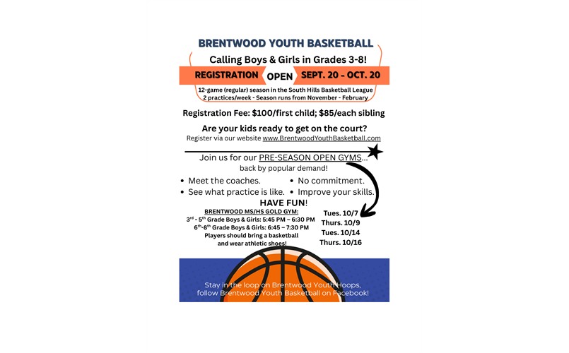 Registration for Brentwood Youth Basketball opens on September 20th! Don't miss your chance to sign up and join the fun this season.